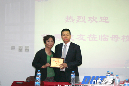 座谈会的最后,李旺校友在校时的辅导员老师宋玉洁老师为他颁发了“电信学部优秀校友”的荣誉奖牌。