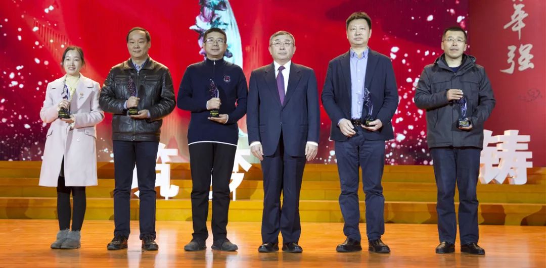 王寒松为在大工捐资设立奖助学金的企业及校友代表颁发纪念奖杯,感谢他们对青年成长和高等教育事业发展的支持。