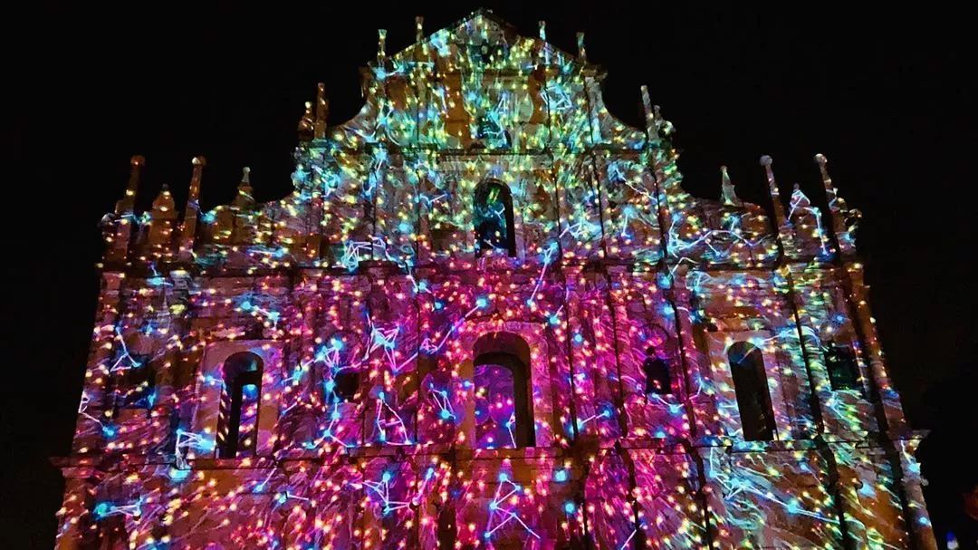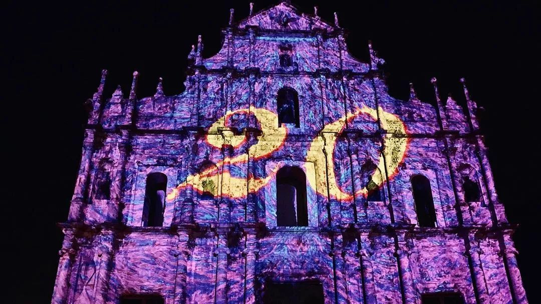 近日,澳门地标大三巴牌坊上演了大型灯光秀。今年澳门的灯光秀,有着浓浓的澳门回归20周年喜庆氛围,璀璨夺目。