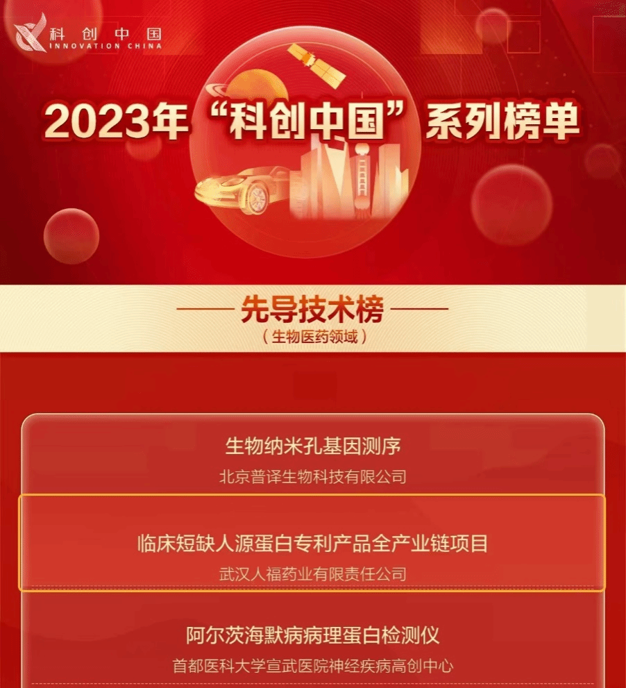 武汉人福药业“临床短缺人源蛋白专利产品全产业链项目”荣登2023年“科创中国”系列榜单