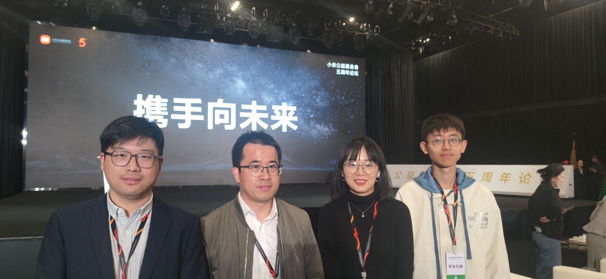 王鹏飞(左一)参加小米公益基金会五周年论坛