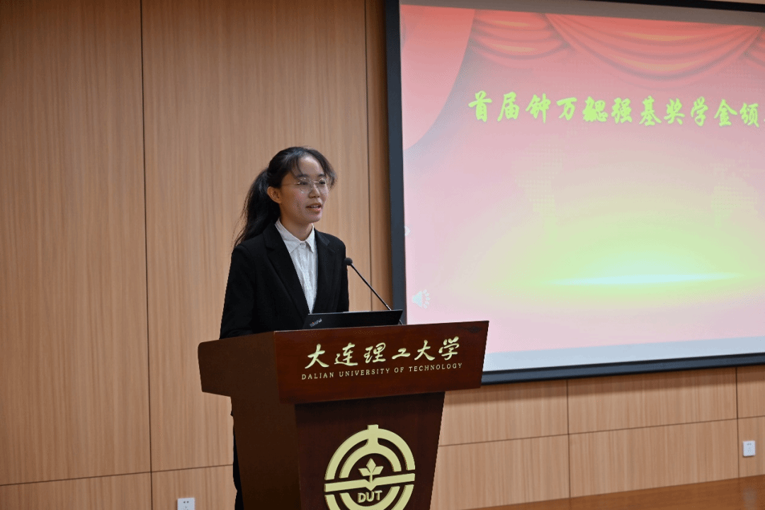 获奖学生代表在发言中表达了对钟先生的缅怀之情,认为钟先生的一生是智慧与奉献的典范,是学生永远的灯塔,并对学院的培养、校友企业的捐赠表示感谢。