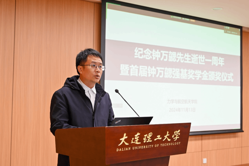 力航学院院长阎军发表致辞,他表示学院设立钟万勰强基奖学金,是对推动“教育科技人才一体化发展”重要论述的具体实践。钟万勰先生作为教育工作者的楷模,以其言传身教,紧扣国家需求,坚持自主创新,赢得了人们的尊敬与爱戴。阎军号召力航学子们要不负使命、不负韶华,再接再厉、坚定创新自信,以青春力量勇攀科技高峰。他强调,对钟先生最好的纪念,是传承他的精神,汲取榜样力量,继续开拓前行,推动卓越力航建设。