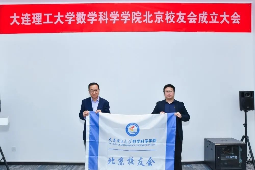 周奇兵宣读了第一届学院北京校友会骨干名单。学院党委书记崔强为学院北京校友会授旗,并为第一届骨干颁发聘书。学院北京校友会会长、1985级应用数学专业校友金震作为代表接受会旗。