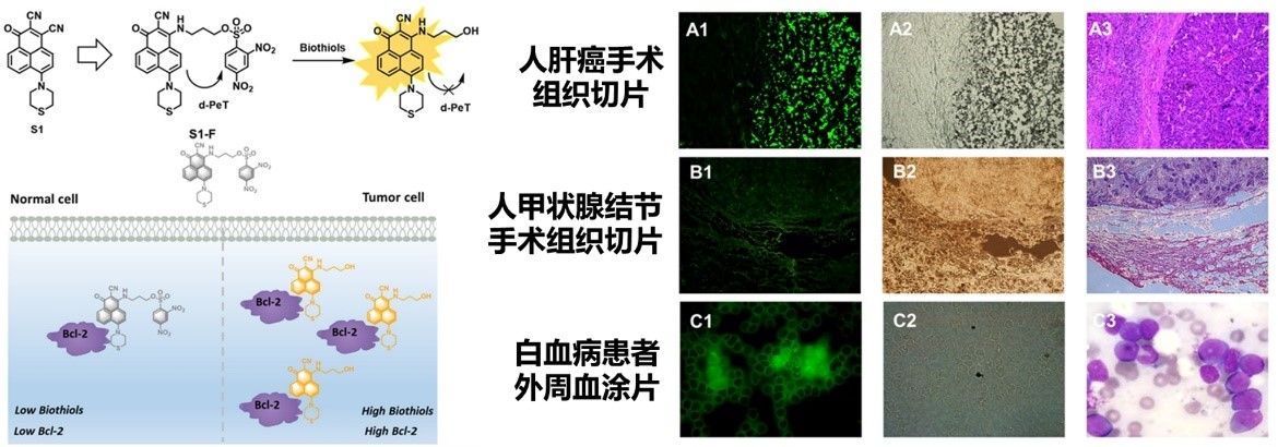 近日,我校医学部药学院张志超教授团队的论文“一种用于肿瘤成像和可视化诊断的双因素级联激活荧光探针”在《化学通讯》上发表。该研究首次制备出肿瘤标志物Bcl-2/GSH级联激活的turn-on型荧光探针,用于不同类型临床样本的癌症鉴别诊断,在精准医疗领域具有广阔的应用前景。