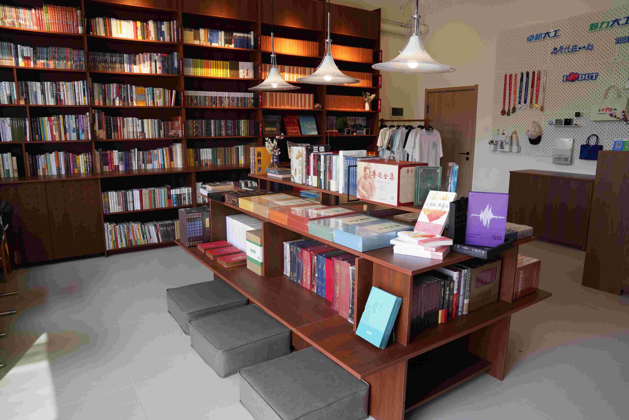 正对面墙上展示着大家心心念念的校友文化衫