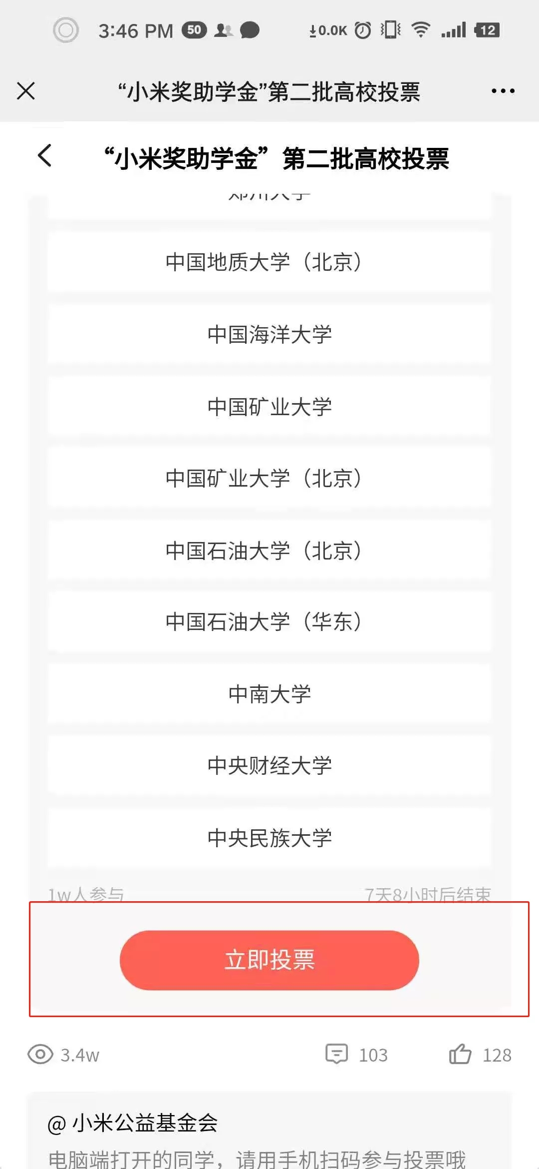 第二批资助高校公众投票正式开启