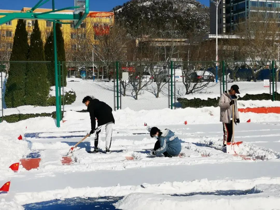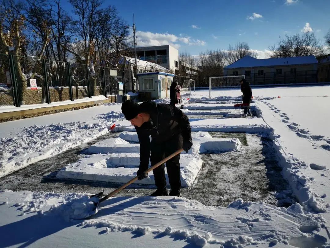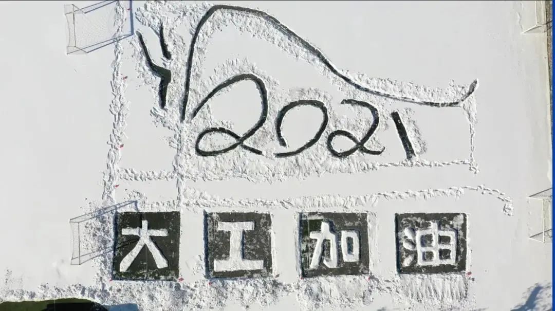 近日,大连迎来了新年的第一场大雪,一时间校园银装素裹、美不胜收。1月9日正值周末,在校团委、学生会、建艺学院、手绘社团和体育场馆中心的共同努力下,青年师生们一道共历时12个小时雪地作画,为中国抗疫点赞,为大连、大工抗疫加油!