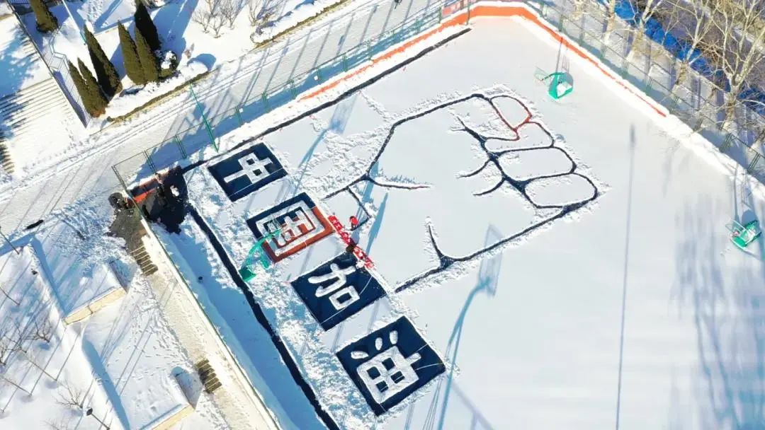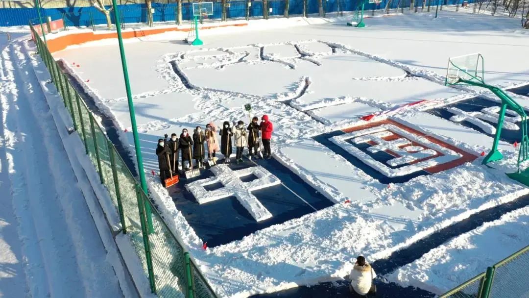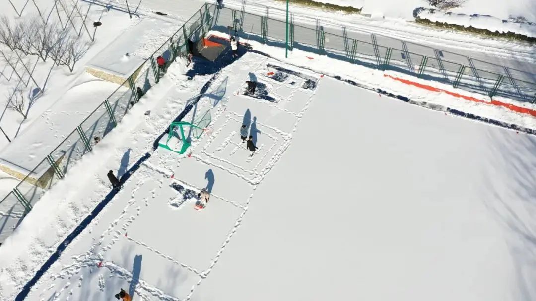 从图纸到踩绘,由雪地变画作,一步一步,一铲一铲,好玩又震撼!