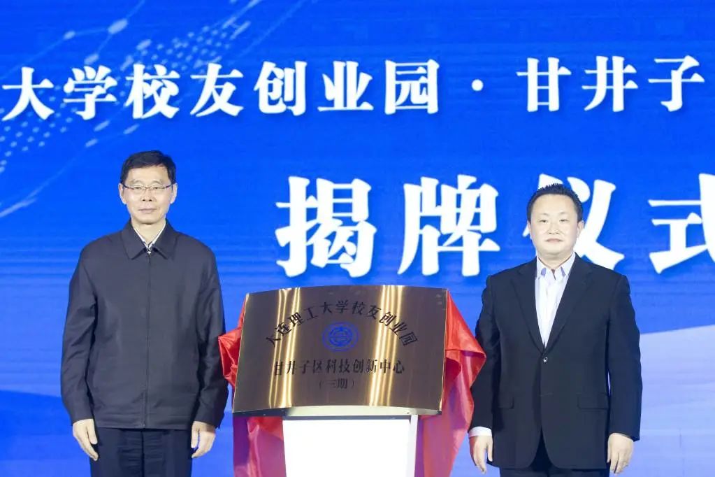 会上,陈绍旺与郭东明共同为“大连理工大学校友创业园—甘井子区科技创新中心”三期揭牌。
