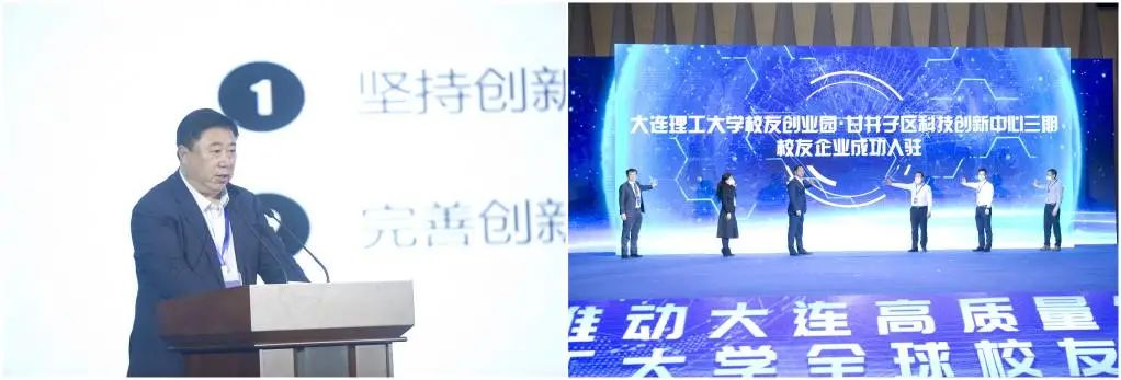 大连市甘井子区委书记方铁林介绍甘井子区科技创新发展情况。随后,举行了“大工校友创业园—甘区科创中心”三期入驻企业签约仪式。