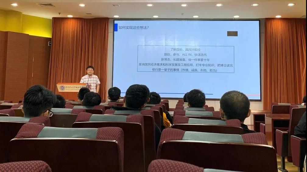 典礼之余,化工学院还致力于打造“校友论坛”,形成育人合力,于开学之际正式启动“2020化工学院校友论坛”。首期“校友论坛”邀请大连理工大学江苏研究院院长、总经理、2000级校友李强博士与学生分享参与技术创新事业的体会。