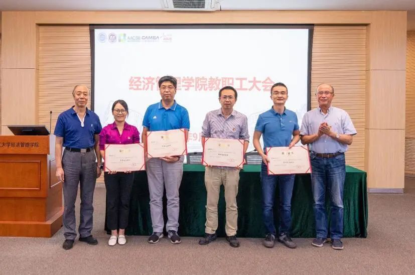 9月22日,在经济管理学院教职工大会上举行了首届“树人计划”教师奖励表彰仪式,郭崇慧教授、潘雄锋教授荣获2020年度“科研成果奖励”,杨光飞教授、林海芬副教授荣获2020年度“青年教工奖励”,党延忠教授、王延章教授为入围获奖的四位教师颁奖。