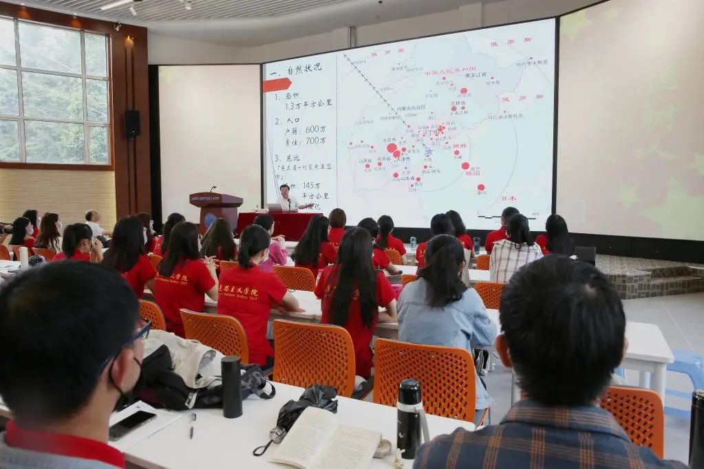 仪式后,张世坤作题为《大连的过去和现在》的报告,马克思主义学院150余名师生现场聆听。报告从大连的地理位置、历史沿革以及城市特点三个方面全面介绍了大连市的发展历程和特色优势,张世坤旁征博引、深入浅出,用开阔的视野为师生带来了一场精彩纷呈的报告,勉励广大学子牢记历史,砥砺前行,努力成长为能够担当民族复兴大任的时代新人。