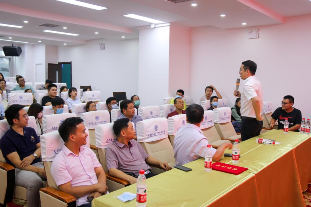 在新老生经验交流环节,王雷老师就新生和家长关心的入学报到需要准备什么、核酸检测流程、学校封闭管理、军训推迟到明年、银行卡办理、行李托运等问题进行了详细讲解,并回答了新生和家长的提问,王老师幽默风趣的谈吐引起了大家一阵阵的笑声。