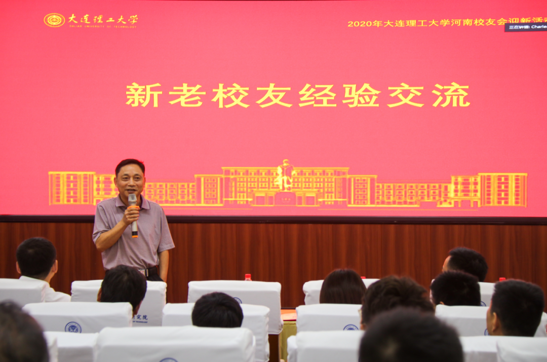 在新老校友交流环节,河南工程学院肖海红教授结合自己在大工的求学经历,大工老师给了自己生活和学习上无微不至的帮助,大工优良的学风给了自己很大的影响,很感谢大工、感谢老师和同学,黄河水利委员会河南局刘月才校友从职业发展规划说起,讲述了自己的工作经历,大工人的踏实、认真留下了深刻烙印,也正是在大工精神的影响下,自己后来在工作岗位上做出了不少成绩,大工河南校友会史存炎校友结合自己的工作经历,提出了初入职场要努力提升自己、工作要踏实认真、目标与行动要互相结合的三点建议,并承诺大工河南校友会尽全力给校友们提供帮助,发挥平台作用,整合资源,成就校友。