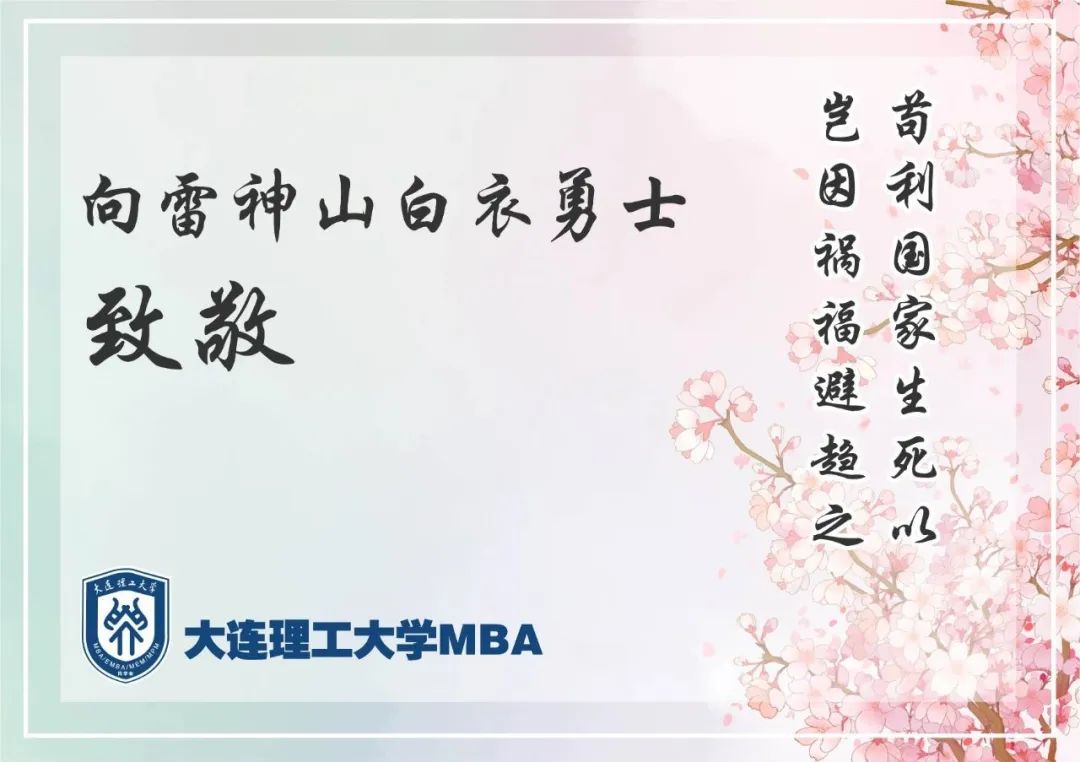 神州一体,万众一心,大连理工大学MBA学子们彰我中华本色,立我国之威名;共愿山河无恙,人间皆安。