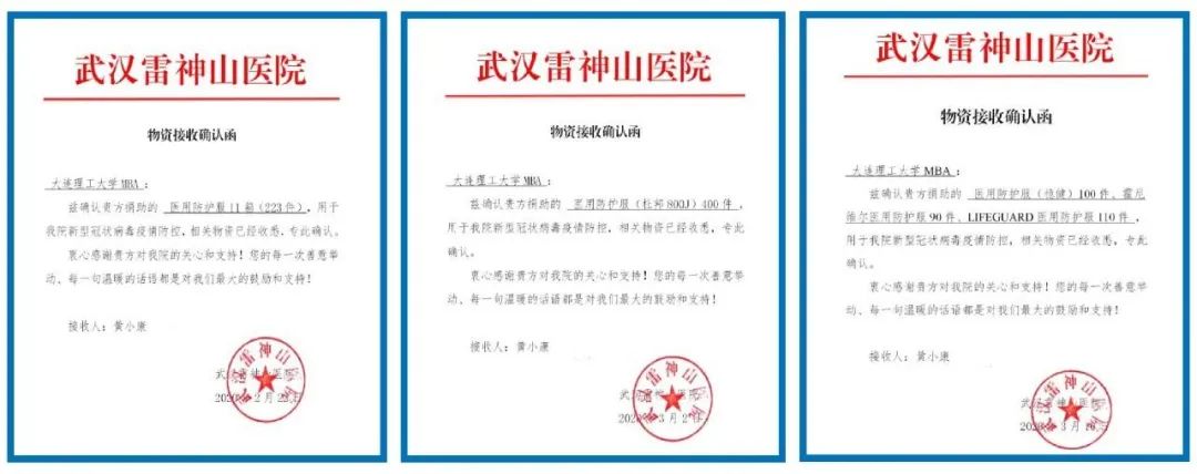 3月10日,当大连理工大学MBA收到来自武汉雷神山医院的第三封物资接收函时,大家都长吁出一口气,面对此次支援抗疫的考题,MBA终于交出了满意的答卷。采购于境内外的923件医用级别防护服,不仅会成为扛鼎逆行的医兵者战胜病魔的铠甲,更是大连理工大学MBA在抗疫面前无私无畏,用集体行动彰显护国卫家的决心。