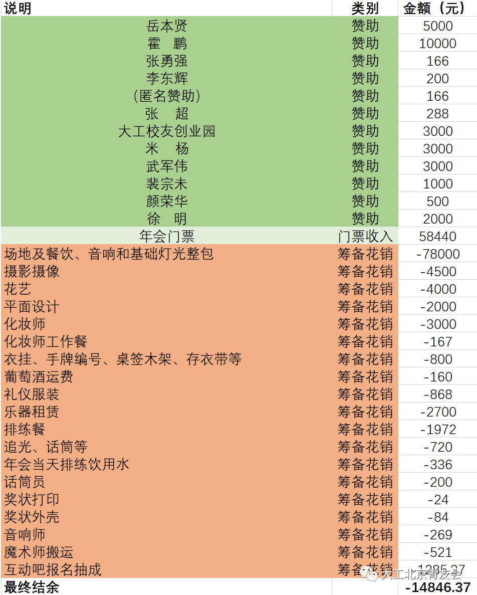 (对于年会筹备中未平衡的花销,由北京青友会理事会设法解决)