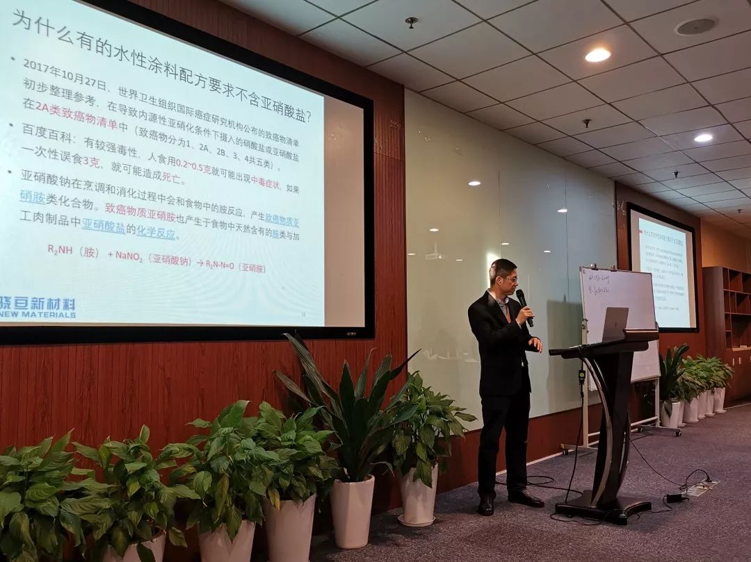 上海骁亘新材料总经理陈洪英介绍防闪锈剂和长效腐蚀抑制剂在水性工业防腐涂料中的应用