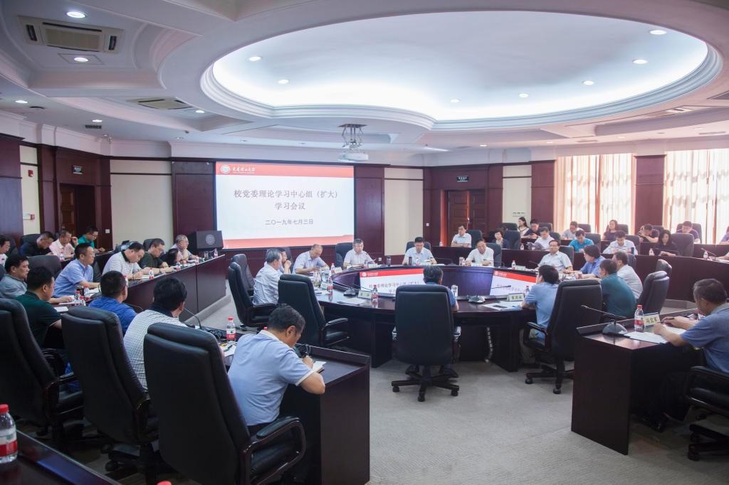 7月3日下午,学校在主楼中心会议室召开党委理论学习中心组(扩大)学习会议,校长郭东明传达李克强总理来校视察时的指示精神,并就贯彻落实工作提出要求,校党委书记王寒松主持会议。教育部党建工作联络员孙家学,校党委理论学习中心组成员,机关各职能部门、直附属单位负责人,各二级党组织书记参加会议。
