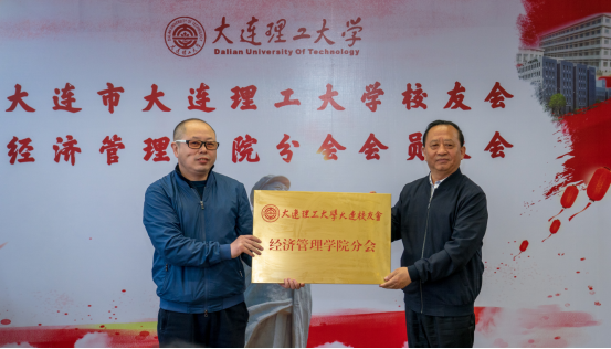 大连校友会代表董长海向经济管理学院分会会长颁发分会会匾,并授分会会旗。
