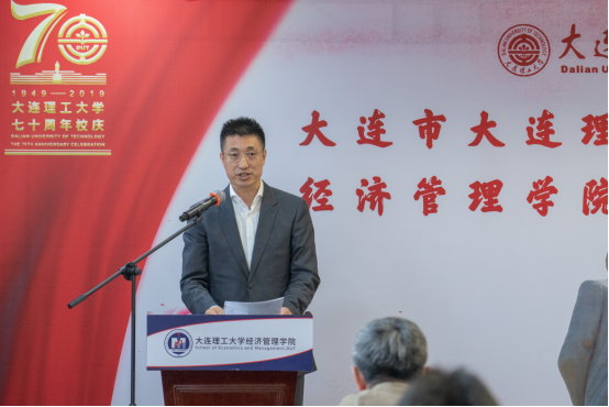 接下来,由董长海学长致辞。他首先对经济管理学院分会的成立以及新当选的分会负责人们表示祝贺。他说,正值母校建校70周年,母校与时代共成长、与祖国共发展。在母校的发展中,要高度重视校友资源的建设,重视校友的发展、贡献与回馈。随后,董长海学长介绍了大连校友会的发展历程,对于如何加强校友会自身建设及院系分会建设、培育校友会组织架构及工作品牌提出了建议。他希望经济管理学院校友分会能够面向广大校友,广泛联系起来,充分组织起来,依靠校友、服务校友,做有活力、有凝聚力的校友分会。