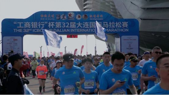 7点30分,伴随着发令枪响,“工商银行”杯第32届大连国际马拉松赛正式起跑,由近500余名大工校友及在校师生组成的方阵集体从起点出发。
