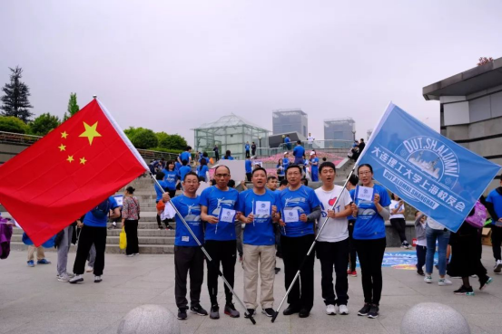 开跑前,校友们亲切合影留念,大家喊出了响亮的口号“祝福大工生日快乐,祝福祖国繁荣昌盛”。