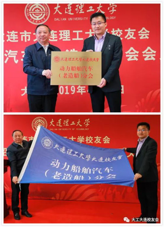 会上,董长海代表大连校友会向分会授牌匾和会旗;刘刚宣读了大连校友会《关于加强院系分会建设意见的通知》。