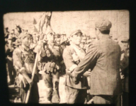 战斗吧同志们,五年后的今天,劳动的鲜花开遍,我们在花丛中,握手相见,幸福啊,年青的战友。”