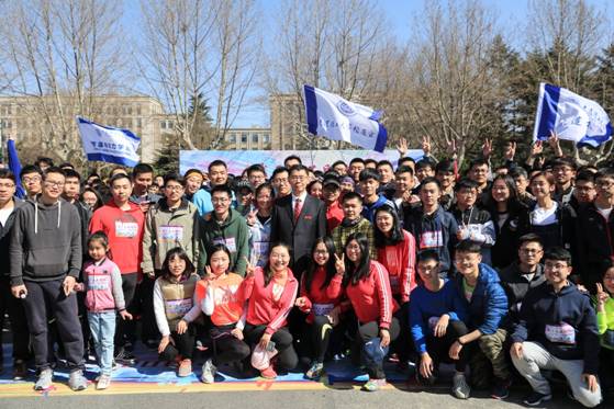 上午9时30分,郭东明校长来到校园环跑活动现场,与助跑选手合影留念。随着郭校长发令枪响,在副校长毕明树、校友工作处处长杨克旭、体教部主任李芃松的带领下,近千名校友师生共同起跑,完成4.15公里的校园环跑活动。