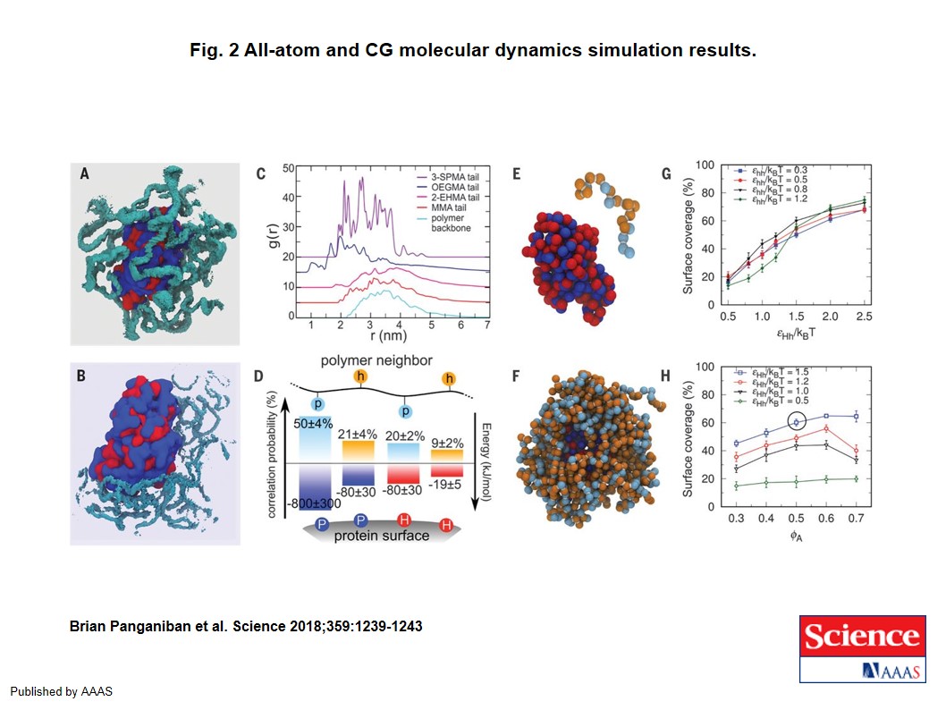 蛋白质的“工作环境”很讲究,只有在特定条件下才能折叠成特定结构并发挥作用,而在细胞外很难保持稳定。徐婷教授研究团队开发出一种新材料,能够裹住某些蛋白质,使其在细胞外环境保持活性。通过分子模拟表明,这种新型高分子材料可与多种蛋白质的表面发生作用,让有机溶液中的蛋白质能够正确折叠。