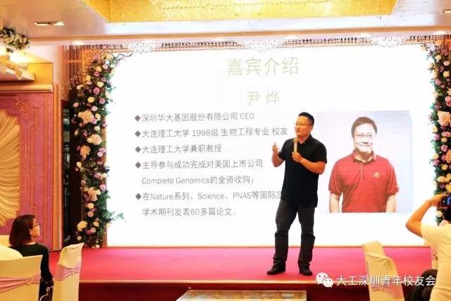 一首歌曲之后,本次活动的重磅嘉宾登场分享。他就是1998级生物工程专业的校友,现任深圳华大基因股份有限公首席执行官的尹烨校友。鉴于华大基因的科研水平以及近期在资本市场上的强势表现,从尹烨有可能参与校友聚会的消息传出起,就在校友中引发了热烈的讨论。