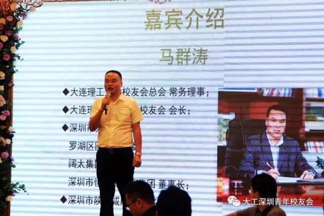 首先由主持人请出了大连理工大学深圳校友会的会长,同时也是校友会常务理事马群涛校友致辞。在致辞中,马群涛校友表示,大工深圳校友会就是各位校友最温暖的家,只要大家在工作学习乃至生活上对组织有什么需求,都会尽最大可能的给予帮助和支持!