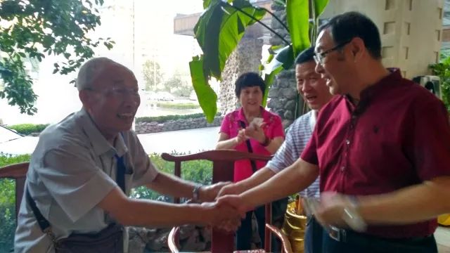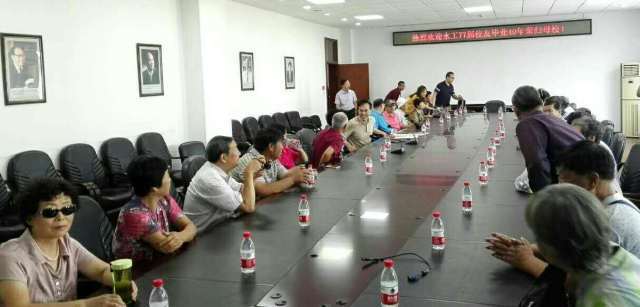 学部周惠成教授比较熟悉水工77届校友,他几乎提前一个多月就精心安排了这次聚会活动的日程,帮助联系了80高龄的王海清老师和72高龄的王立久老师。王立久老师在座谈会上深情地说,我们是一种特殊的不可比拟的师生关系,可以说是亲老师,是全才老师。四十年前,王立久老师是老师也可以说是兄长,课堂上的严厉和课后的亲切毫无保留地留在相聚的画面中。那一举一动包含着久别重逢,也包含着相互欣赏。王海清老师听说四十年前的学生来了,提前来到同学中间,高兴的用双手同时与大家一一握手,并全程参加了聚会活动。80高龄的老师向60多岁的学生介绍学校的变化,一起回忆四十年前的往事,夕阳师生共同留恋青春时光。