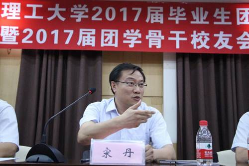 宋丹副校长对2017届毕业生团学骨干顺利完成学业、圆满完成团学使命表示祝贺,充分肯定了团学骨干在学校发展等方面作出的贡献,勉励大家努力成长为“人品好”“人际好”“身体好”“想法多”的社会栋梁之才,鼓励广大毕业生团学骨干牢固树立博学意识,多读经典论著,坚守理想追求,永葆大工情谊,将大工的红色基因真正融入血脉中去,为国家和社会的发展做出自己的贡献,无愧于大工人的称号。