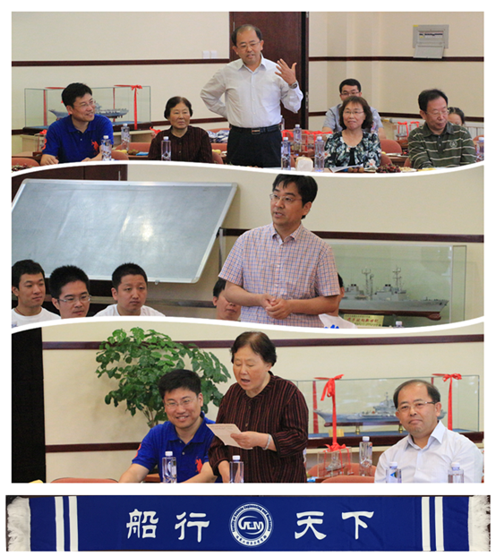 紧接着,校友们和老师们前往综合实验二号楼313举行级队座谈会,座谈会由03级级队长陈昱希校友主持。陈昱希代表校友向运载学部、船舶工程学院赠送了“172舰”、“辽宁号”船模,感谢学校、学院的辛勤培养,感谢老师的热心教导。
