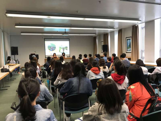 王爱萍校友移民海外多年,有着丰富的学习和创业经历。座谈会中,她详细介绍了在美国的求学和生活情况,分析了在国外留学的利弊,并分享了自己的创业打拼经历,其幽默博学的个人魅力深深地感染了在场的每位学生。