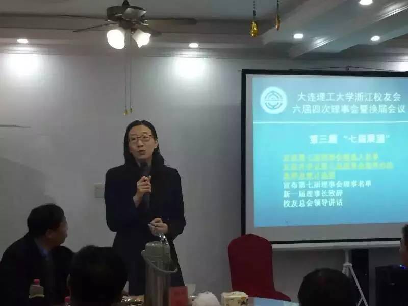 会议最后,邬霞老师致辞。她首先代表学校校友会向新当选的第七届理事会成员表示祝贺,肯定了浙江校友会第六届理事会的工作和成绩,随后介绍了近年来学校及校友会的发展情况和奋斗目标,并希望浙江校友会未来继续搭建好校友与母校的沟通桥梁,服务好浙江校友的同时,促进母校校友工作的完善,为母校发展和国家建设做出更大贡献。