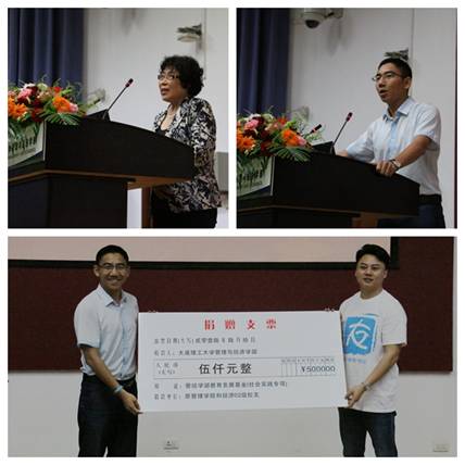 02级队出席本次大会的同学向学部捐赠了五千元学部社会实践基金,由郑皓副部长代表学部从校友手中接过