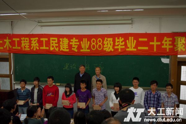 在本次聚会上,工业与民用建筑专业88级校友捐资两万元钱,支持10名家境贫寒、品学兼优的建设工程学部在校学生,鼓励他们好好学习、积极进取、克服困难、不断奋斗,将来成为国家的栋梁之才。2011级学生牛旭阳代表获得资助的10名学生发言,感谢学校的培育和关怀,感谢校友们的关心和激励,表示绝不虚度光阴,而要不断进取,不负众望,力争成为一名卓越的工程师,为祖国的社会主义建设事业贡献力量,奉献青春。同时,他也表示,要在接受大家帮助的同时,尽最大的努力帮助别人,传承互帮互助的良好风尚。
