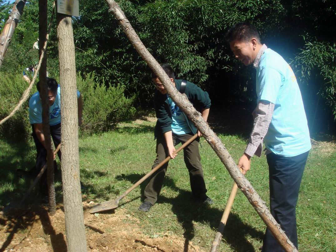 会后,大家合影留念,并来到了曾经管理88级男寝9舍的门前,植下了属于管理88级的校友林。