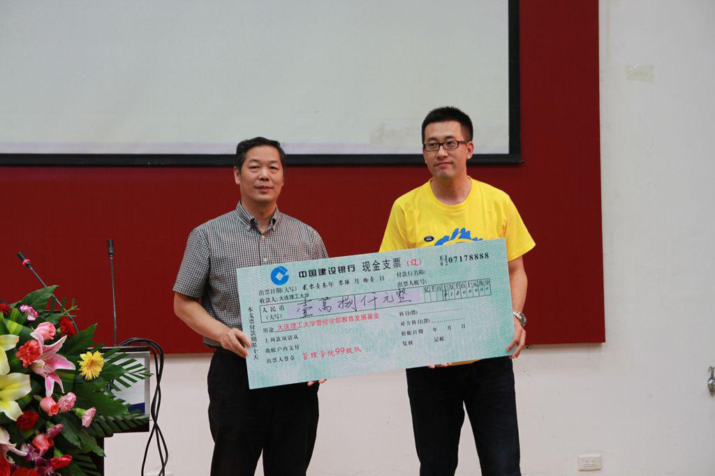 大会的最后,由苏敬勤部长代表学部从校友代表李恩乐手中接过99级队向学部捐赠的学部教育发展基金。
