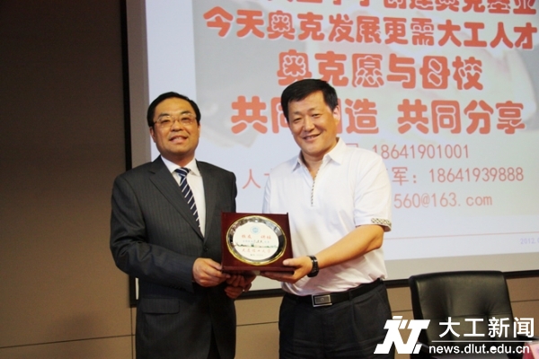 为展示校友风采,弘扬大工精神,丰富校园文化氛围,激励在校学生爱校荣校,奋发成才。6月4日下午,奥克集团董事长、辽宁奥克化学股份有限公司董事长兼总裁、我校85级应用化学专业硕士研究生朱建民校友应邀做客大工校友讲坛,在主楼第一报告厅以“天生我才必有用”为题做了一场精彩的报告。校党委常务副书记姜德学出席讲坛,并向朱建民校友颁发“大工校友讲坛纪念牌”。校友会办公室主任杨克旭、化工与环境生命学部副书记兼副部长王志伟和200多名学生参加了讲坛。