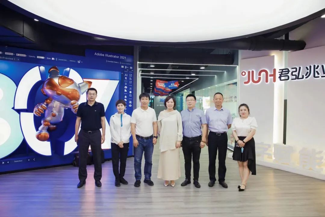 调研团一行来到君弘兆业集团,在董事长王军校友的指引下,参观了沉浸式虚拟直播间、电商直播间和文创IP实验室,实地考察并体验了虚拟直播的实现方式和工作成果。作为沈阳首家以数字营销为核心的全链路的文化科技产业集团,经过13年的发展,君弘兆业集团现已入选辽宁省首届省级文化与科技融合示范基地,成为辽宁省文化和科技融合的示范企业。