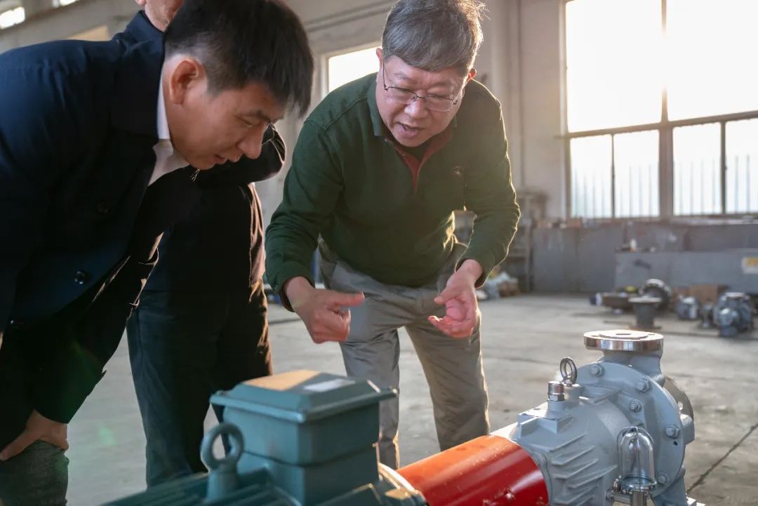 盛国和校友介绍了自己的创业经历和公司近年发展情况,带领调研团一行参观生产车间并介绍产品。随后进行的座谈交流环节,双方围绕科技合作对接、未来发展方向、产学研合作等方面进行深入探讨。