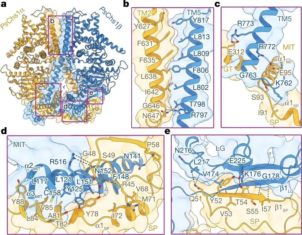 该研究还进一步探明了几丁质合成酶与活性小分子尼克霉素结合的模式,解释了尼克霉素抑制几丁质生物合成的机制,为靶向几丁质合成的绿色农药开发提供了基础性、关键性的信息,使得以几丁质合成酶为分子靶标精准开发新型绿色农药成为科学可行的方案,具有重要的理论和应用价值。