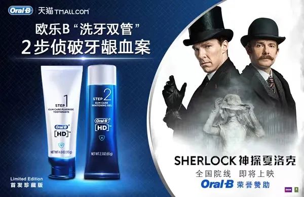 2016年,宝洁重磅推出了一款主打精英男士的产品——双管牙膏,张璐和团队商量一番之后决定要将这个产品与当年BBC制作的超级IP电影《神探夏洛克》联动。这是一个非常巧妙的联动:夏洛克与华生作为英剧里的CP(人物配对),本来就是两个人,而双管牙膏顾名思义,也突出了一个“双”字;剧中的夏洛克与华生也正好代表了英国中年精英的影视形象。看着如此契合的联动,张璐却高兴不起来:“BBC在版权领域是出了名的门槛高,非常难合作;宝洁知名度太高,对合作的IP非常挑剔,也不愿意为IP联动付出更多代价。”