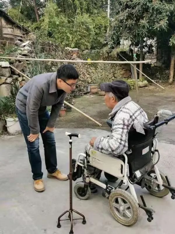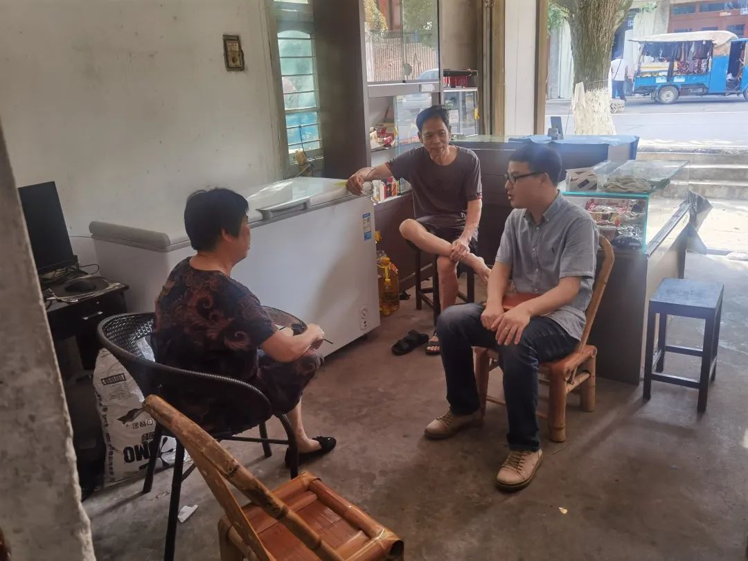 苏志贤(右一)走访村民